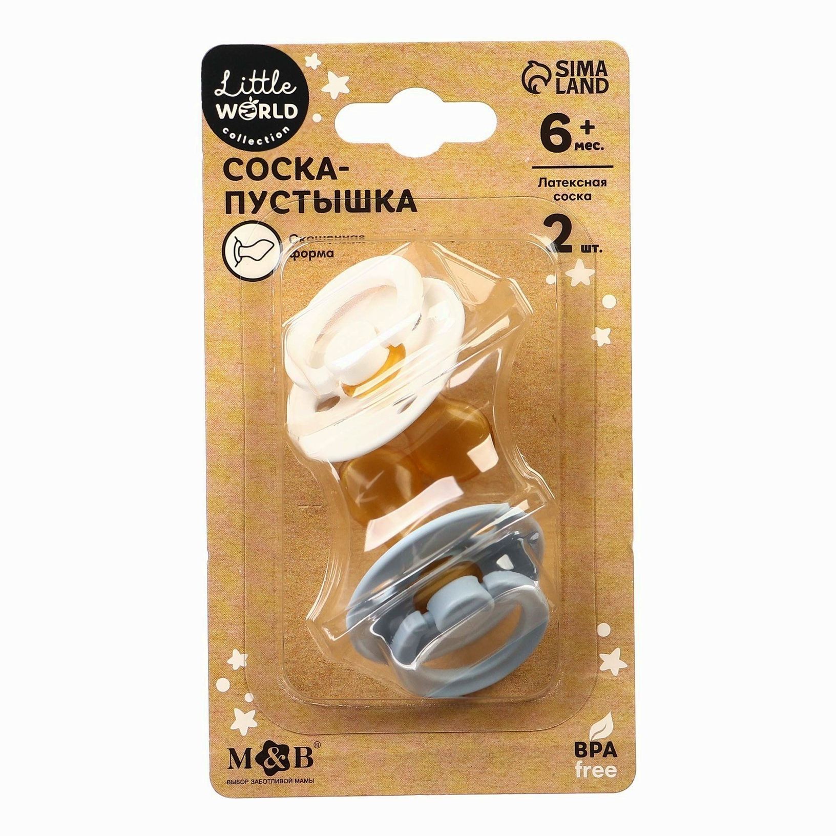 Набор ортодонтических пустышек, 2 шт., +6мес., латекс, для мальчика (№9903226).