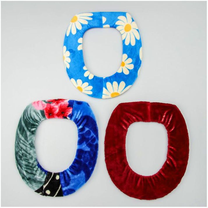 Чехол для сиденья унитаза легко натягивается и надёжно крепится благодаря резинке. Он убережёт вас от холода ободка и добавит в интерьер уборной новые краски.