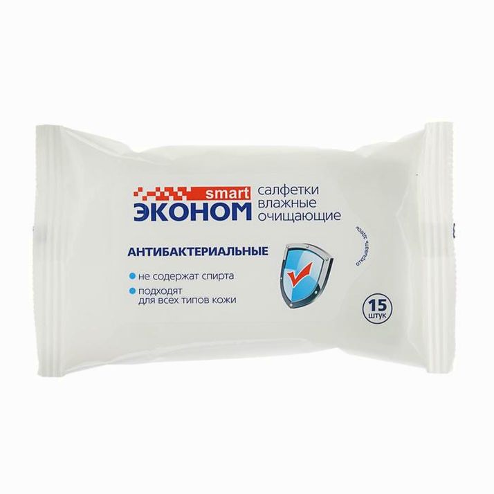 Влажные салфетки "Эконом" Smart, антибактериальные, 15 шт (№2527027).