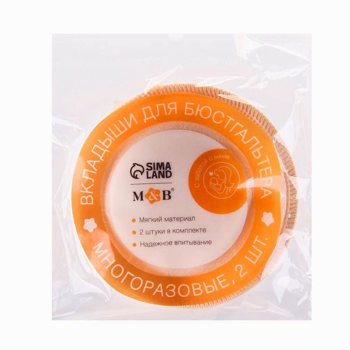 Набор многоразовых вкладышей для бюстгальтера, 2 шт., цвет бежевый (№7569750).