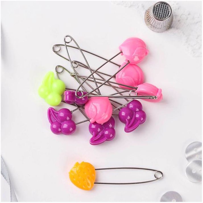 Булавки английские «Фрукты», безопасные, 50 мм, 10 шт, цвет МИКС (№600400).