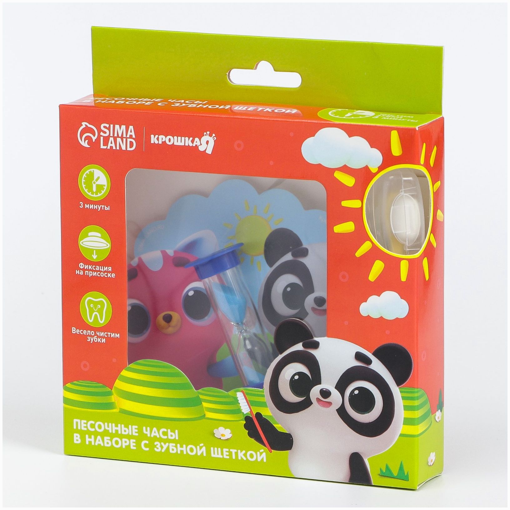 Набор зубная щётка и детские песочные часы для чистки зубов на присоске «Малыши-кругляши» (№7121420).