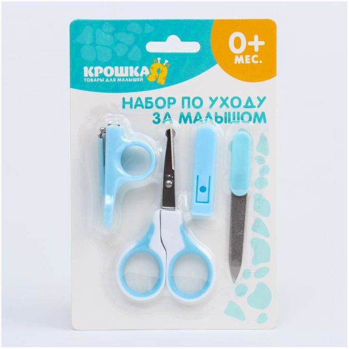 Детский маникюрный набор: безопасные ножницы с колпачком, щипчики, пилочка, от 0 мес., цвет голубой (№2315244).