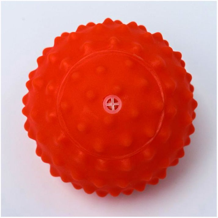Занимаясь с шипованным мячиком, ребёнок будет массировать кончики пальцев. Такое воздействие способствует развитию мелкой моторики и тактильных ощущений.