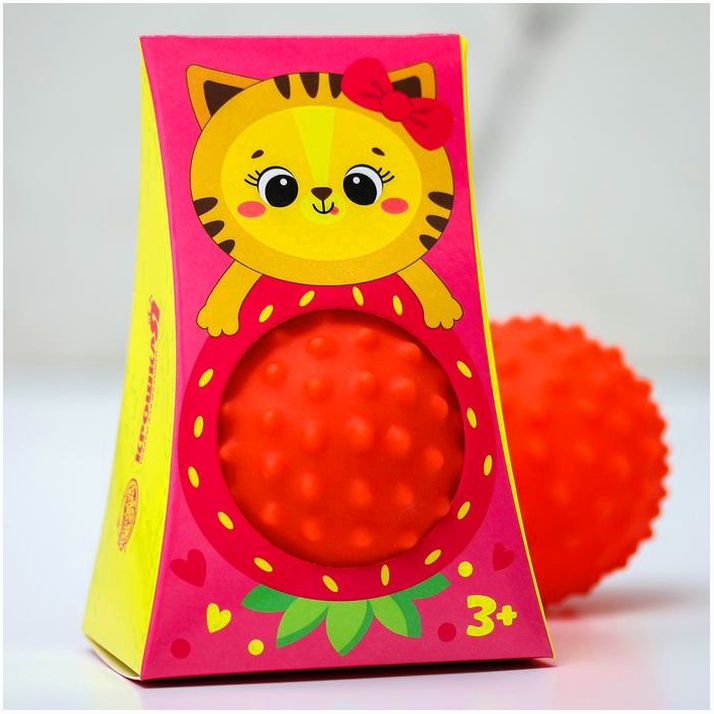 Развивающий тактильный мячик «Кошечка», с пищалкой, 1 шт, Крошка Я (№4916704).