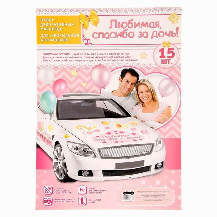 Набор магнитов на авто «Любимая, спасибо за дочь!», на выписку (№1567669).