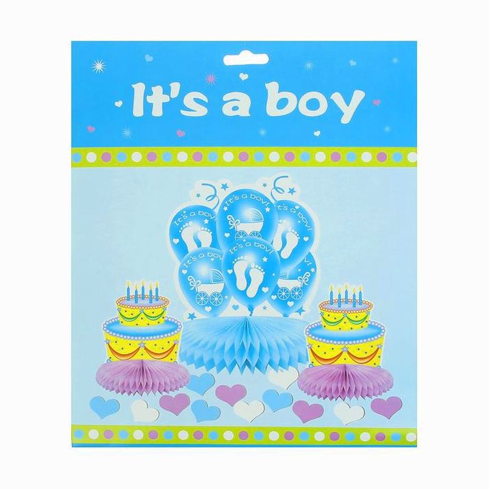 Бумажное украшение для стола «С рождением малыша», тортики, сердечки, набор 3 шт. (№1236914).