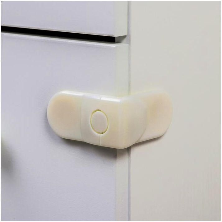 Угловой фиксатор. Не позволит крохе открыть шкафчики или ящики тумбы, защитит карапуза от защемления пальцев и контакта с опасными предметами.