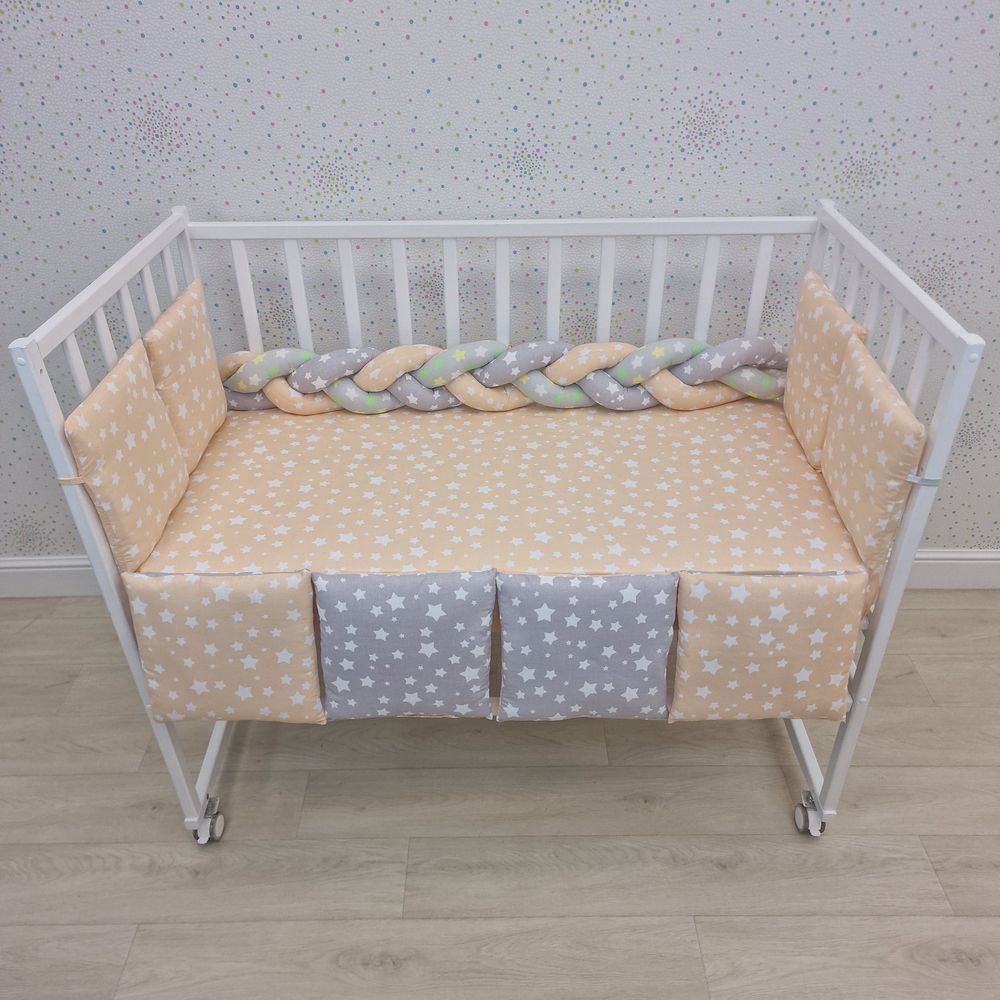 Бортик - "Коса 3х" + 8 подушек по всему периметру кроватки (бязь + синтепух/синтепон) (№990б_08) цвета в ассортименте.