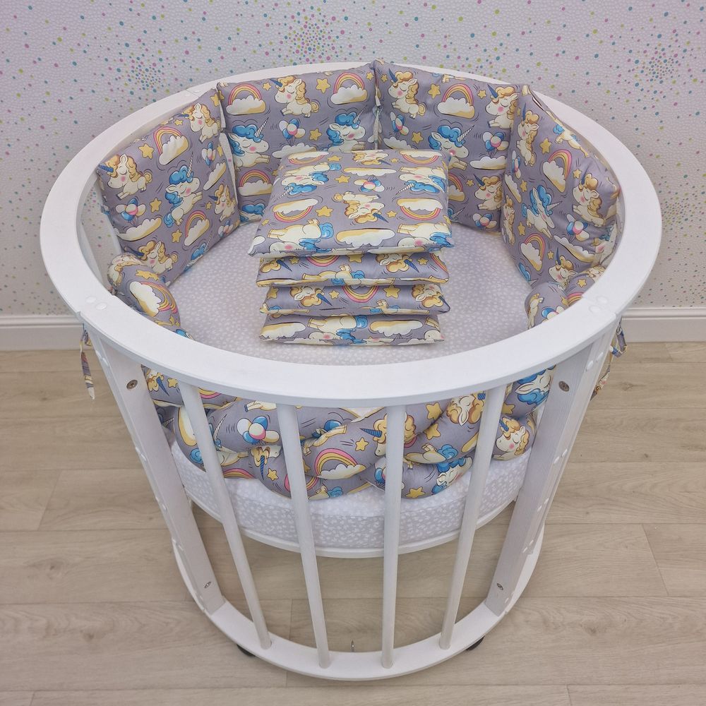 Бортик - "Коса 3х" + 8 подушек по всему периметру кроватки (сатин + синтепух/синтепон) (№990с_07) цвета в ассортименте.