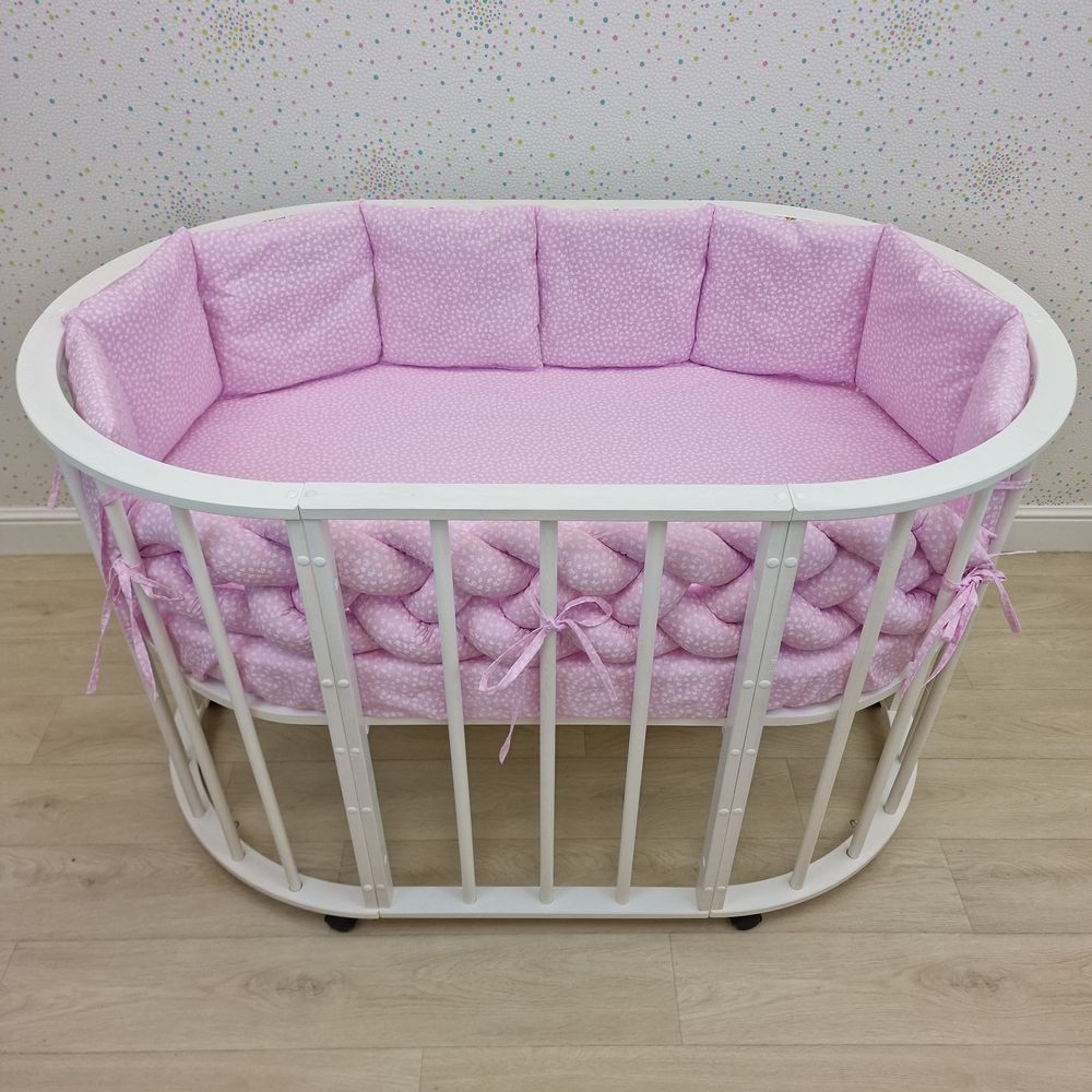 Бортик - "Коса 4х" + 8 подушек по всему периметру кроватки (бязь + синтепух/синтепон) (№991б_04) цвета в ассортименте.