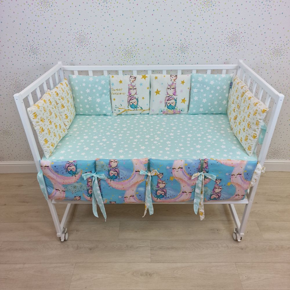 Бортик "купон" из 2+10 подушек по всему периметру кроватки (бязь/перкаль + синтепон) (№К109_2а10) цвета в ассортименте.