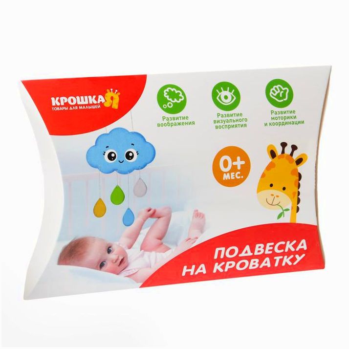 Мобиль-подвеска на кроватку имеет яркие игрушки в виде забавных персонажей, которые привлекают внимание малыша, развивают визуальное восприятие и воображение..