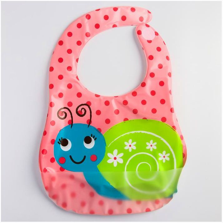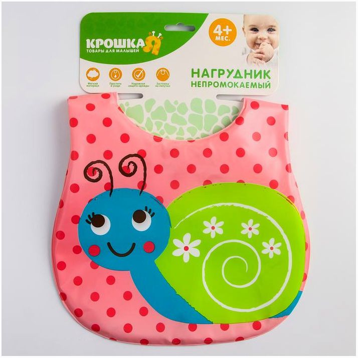 Нагрудник для кормления «Улитка» непромокаемый на липучке, с карманом, мягкий (№1184491).