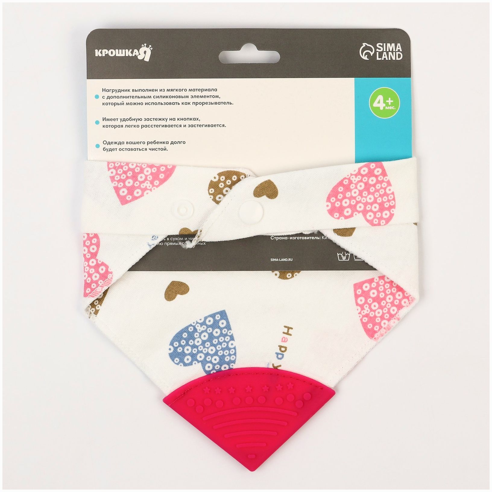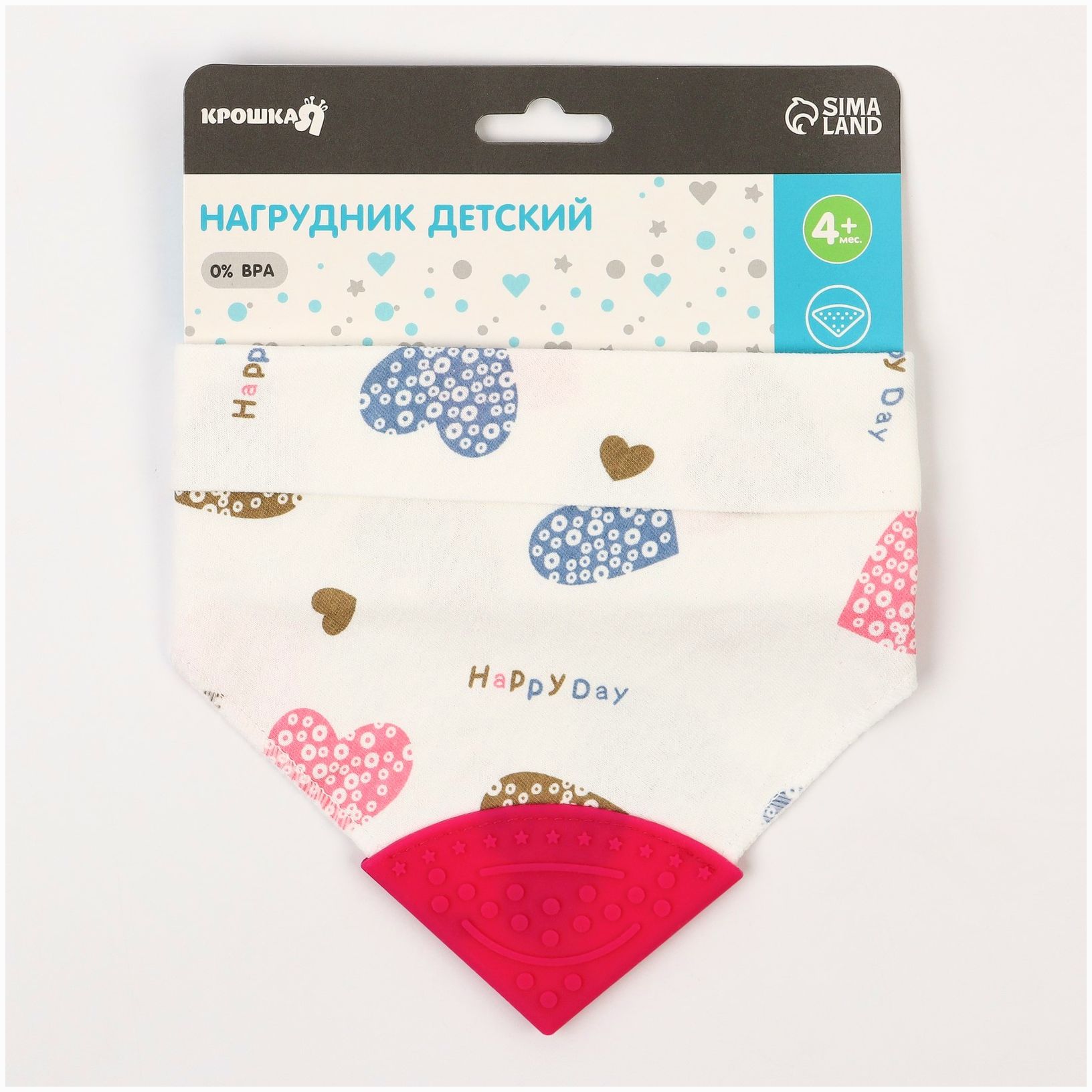 Нагрудник-бандана/слюнявчик непромокаемый с прорезывателем на кнопке, цвет розовый, МИКС (№4405120).