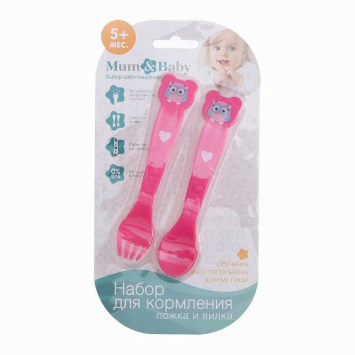 Столовые приборы «Совушка Лили», 2 пр: ложка и вилка, от 5 мес., цвет фуксия (№2618973).