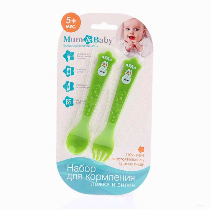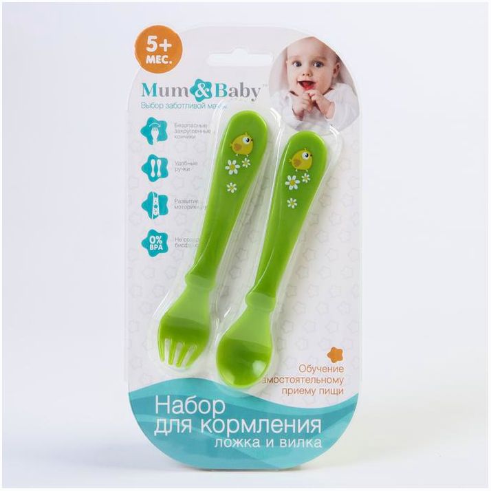 Набор для кормления: ложка и вилка «Для Малыша», от 5 мес., зеленый МИКС (№4822602).