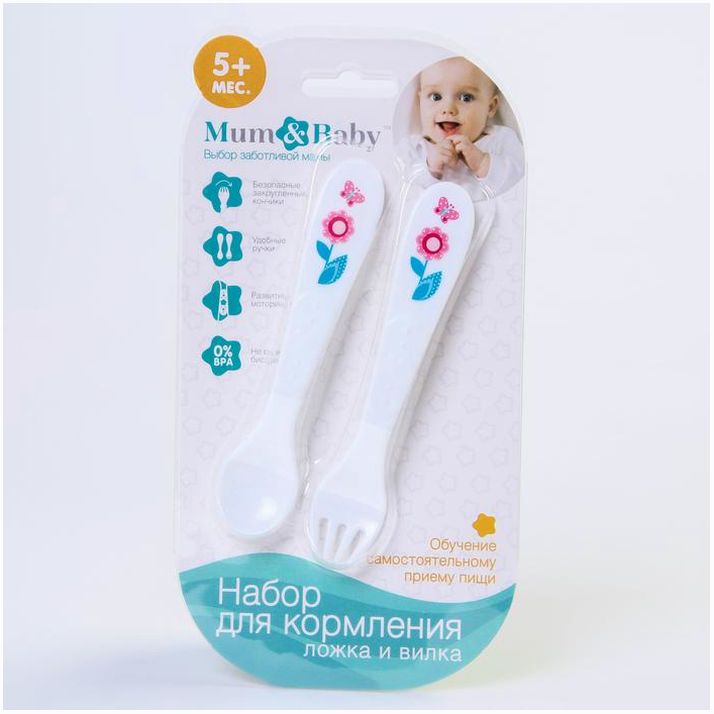 Набор для кормления: ложка и вилка «Для Малыша», от 5 мес., белый МИКС (№4839929).