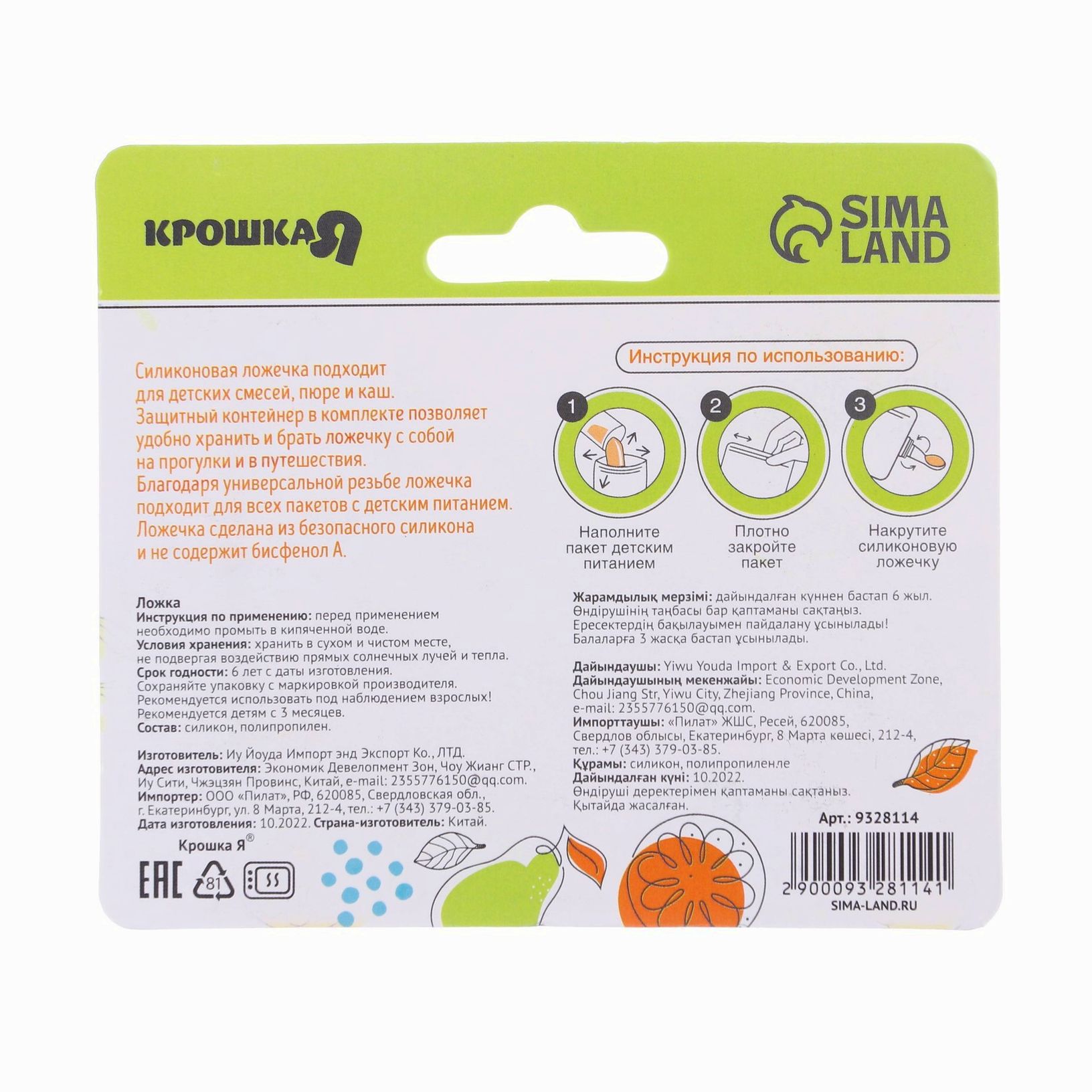 - Набор пакетов для хранения детского питания с ложкой Крошка Я, 200 мл, 10 шт. арт: 9254736