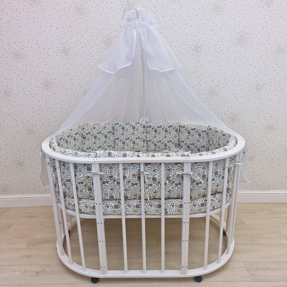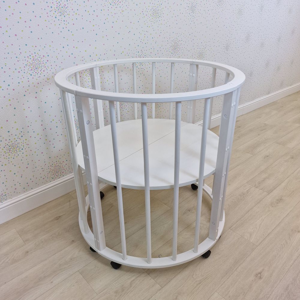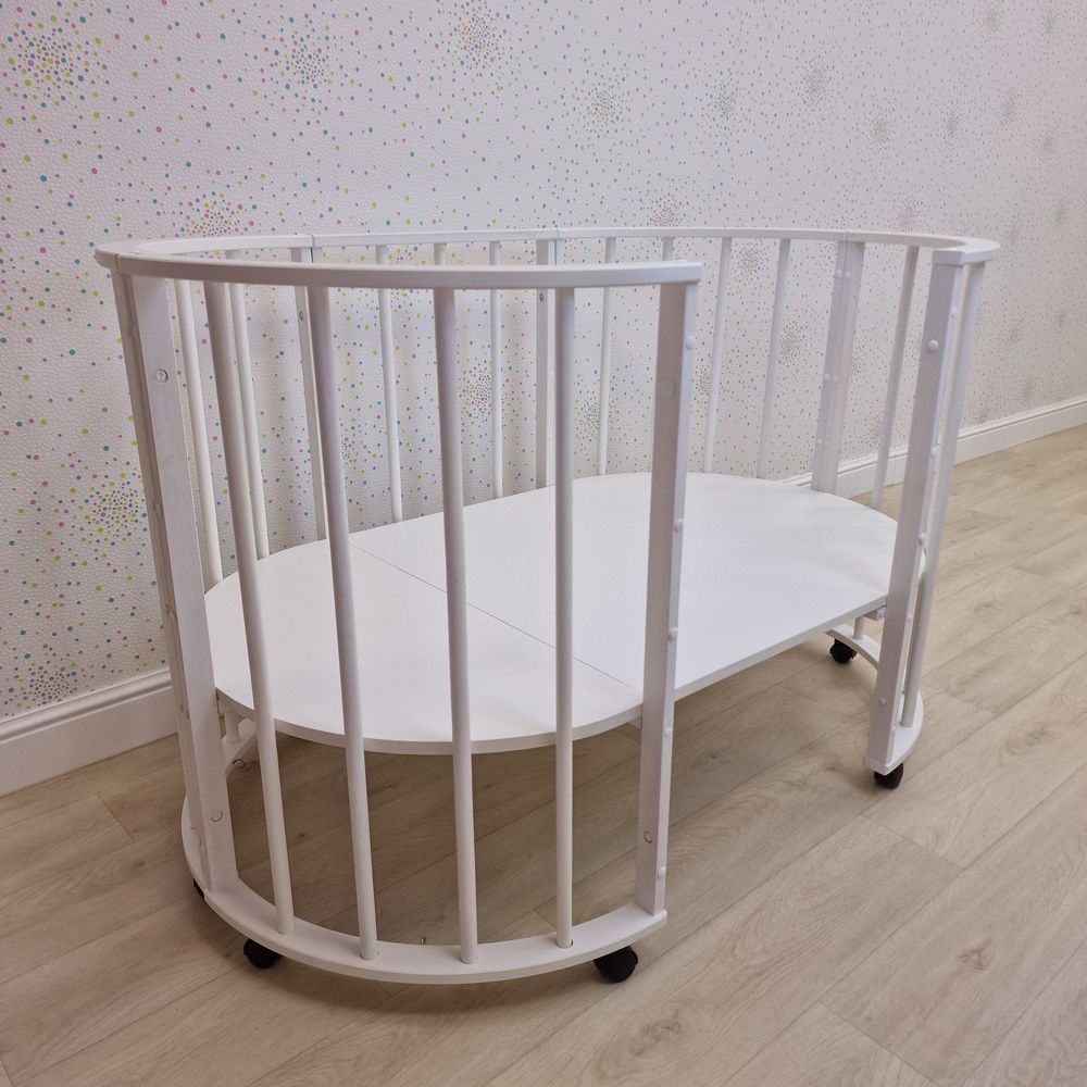 - Трансформер (состоит из трёх отдельных частей, можно использовать в круглой кроватке + на пеленальном столике, потом в овальной кроватк