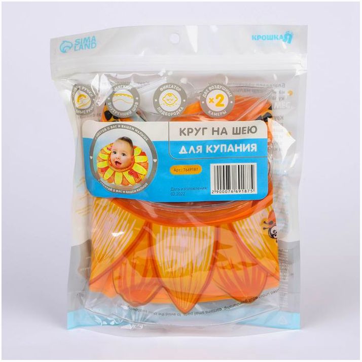 Круг детский на шею, для купания, «Подсолнух», с погремушками, двухкамерный, цвет оранжевый (№7669187).