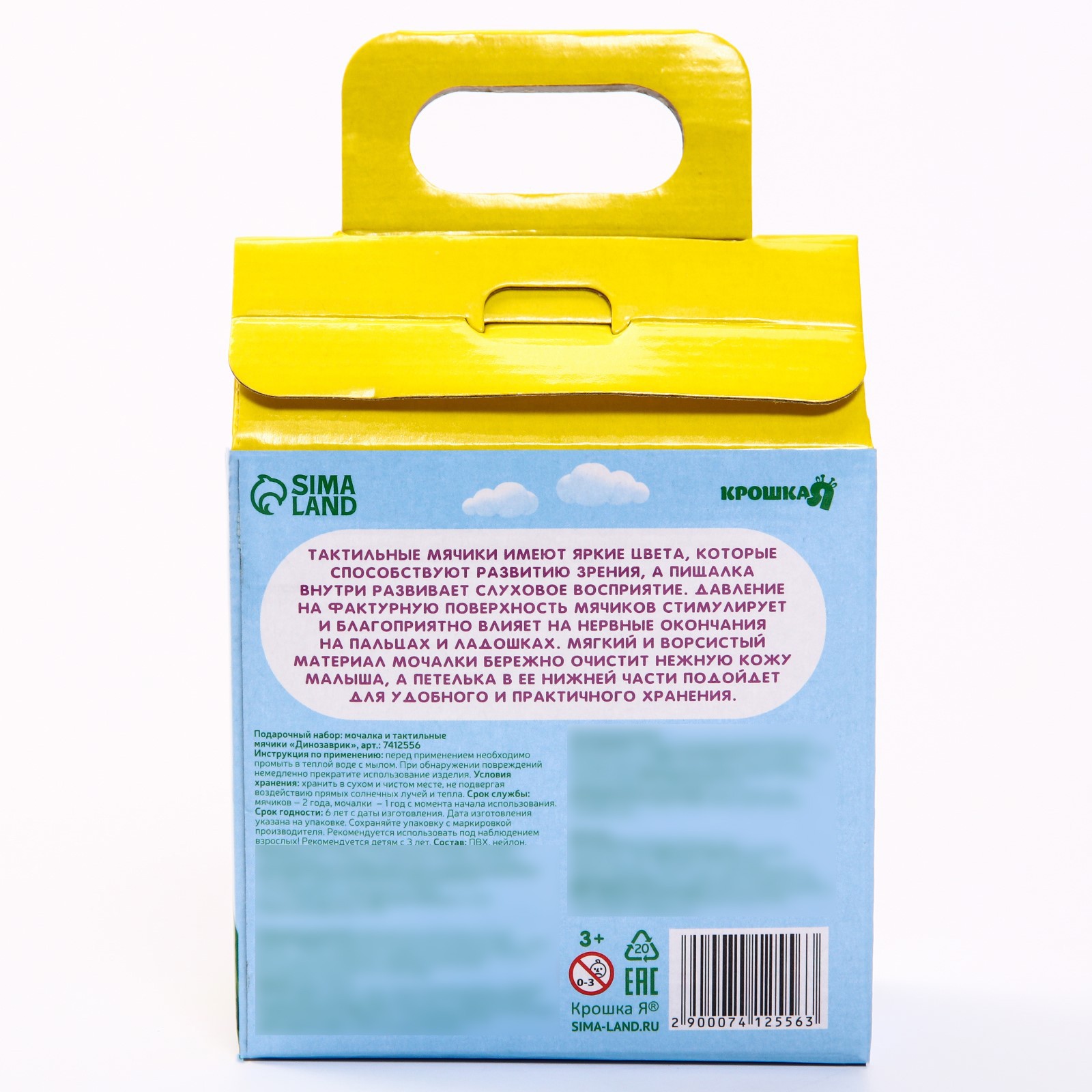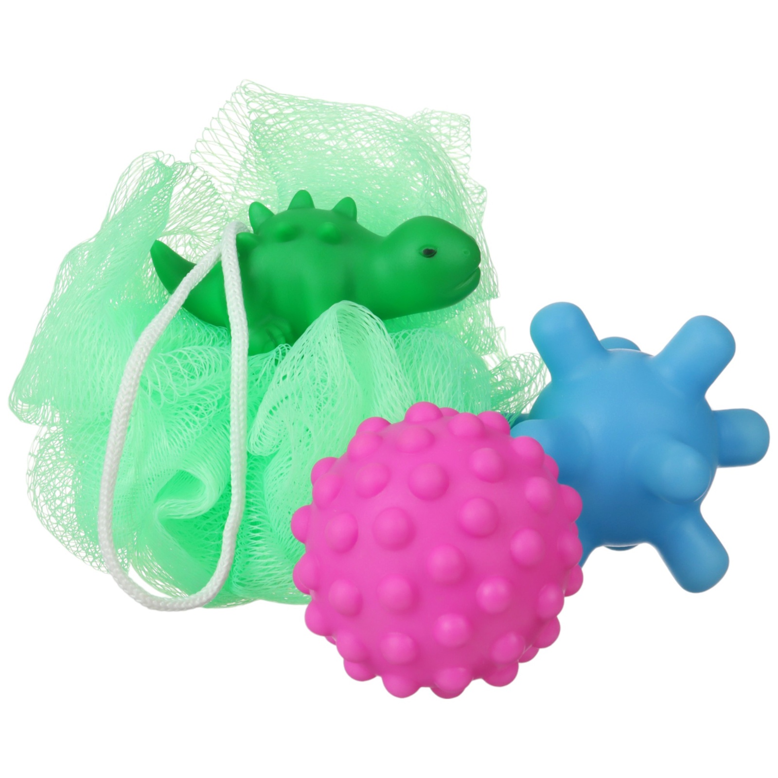 Набор для ванны "Динозавтрик", мочалка с игрушкой, 2 тактильных мячика, Крошка Я (№7412556).