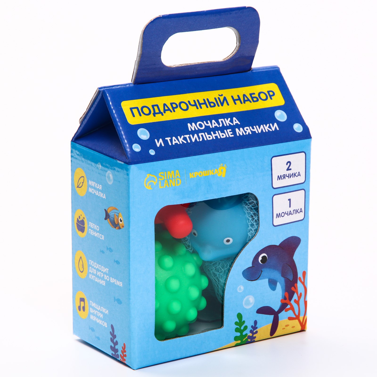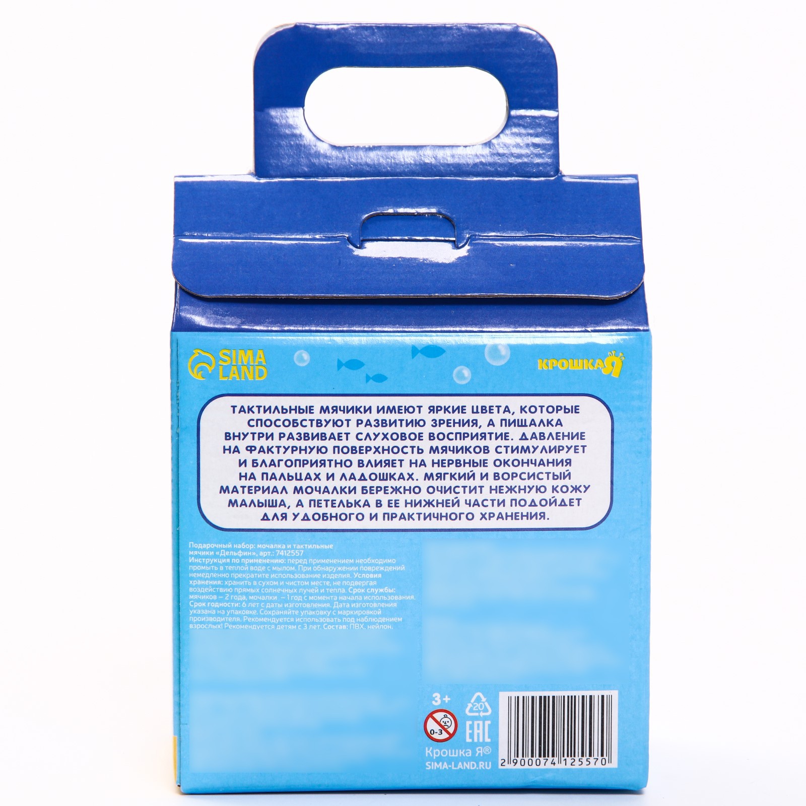 Набор для ванны "Дельфин", мочалка с игрушкой, 2 тактильных мячика, Крошка Я (№7412557).