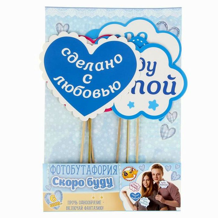 Время беременности — самое волнующее. Навсегда оставить в памяти чудесные моменты поможет набор фотобутафории "Скоро буду, ждите!". В него входят 6 ярких тематических предметов на деревянной ножке. Окунитесь в атмосферу детства,разыгрывайте различные сценки, делайте оригинальные снимки или просто дурачьтесь — весёлая фотосессия и отлично проведённое время гарантировано.
