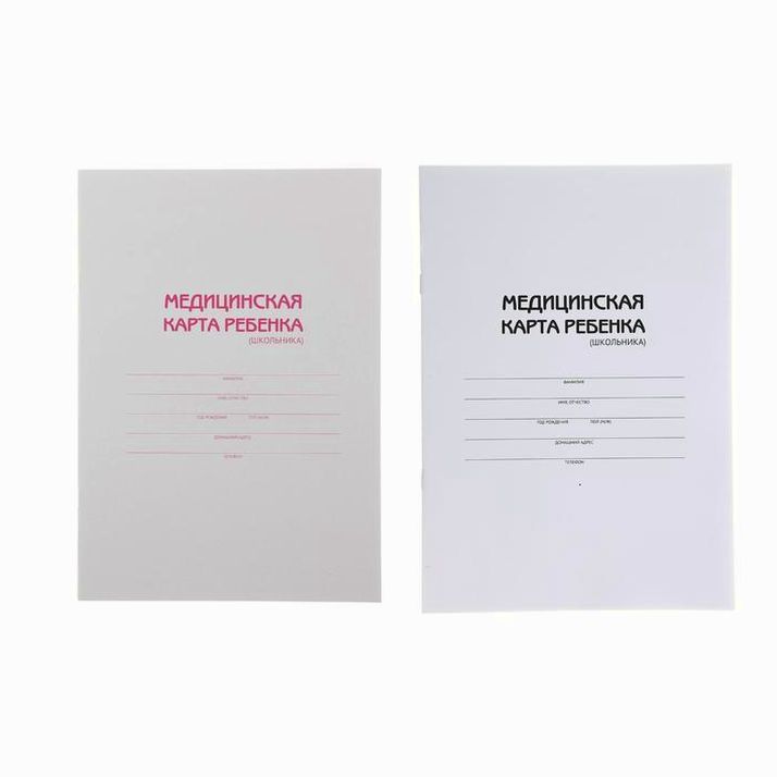 Медицинская карта ребёнка (школьника) А4, 16 листов, обложка картон хром-эрзац (№1050126).