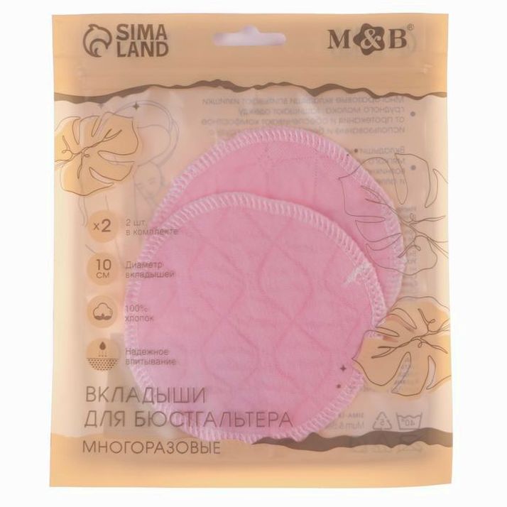 Набор многоразовых вкладышей для бюстгальтера, 2 шт., цвет розовый (№5525460).