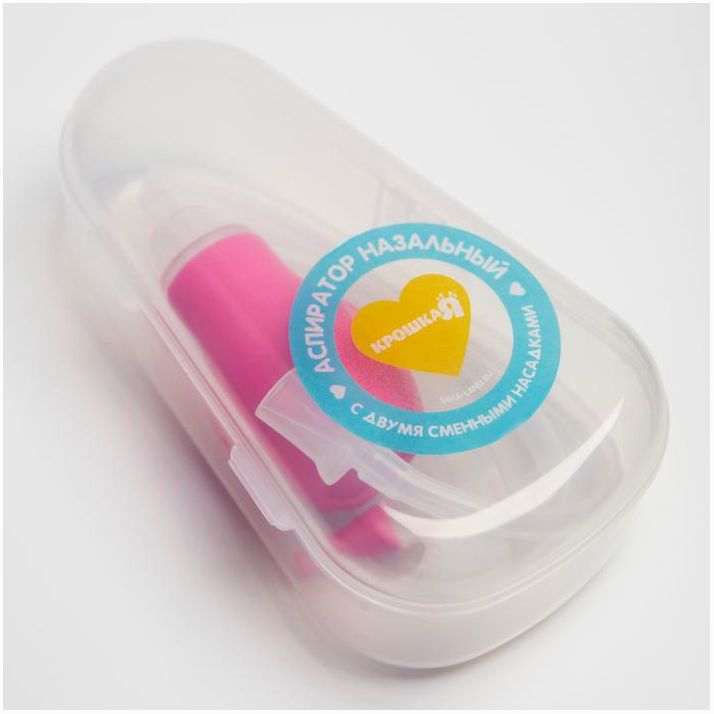 Детский назальный аспиратор с 2-мя сменными насадками, в контейнере, цвет розовый (№5276556).