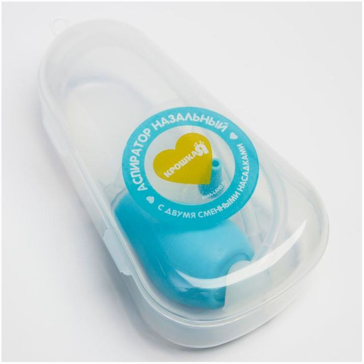 Детский назальный аспиратор с 2-мя сменными насадками, в контейнере, цвет голубой (№5276557).