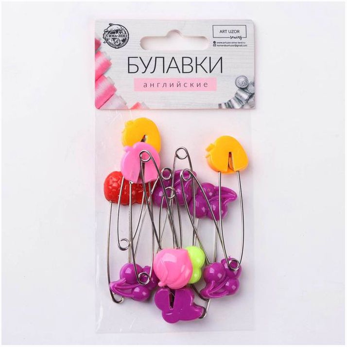 Булавки английские «Фрукты», безопасные, 50 мм, 10 шт, цвет МИКС (№600400).