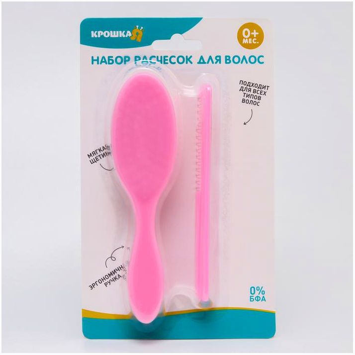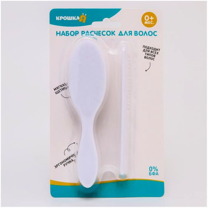 Набор подходит для первых волос малыша. Закруглённые зубчики расчёски и мягкий нейлоновый ворс не травмируют нежную кожу ребёнка.