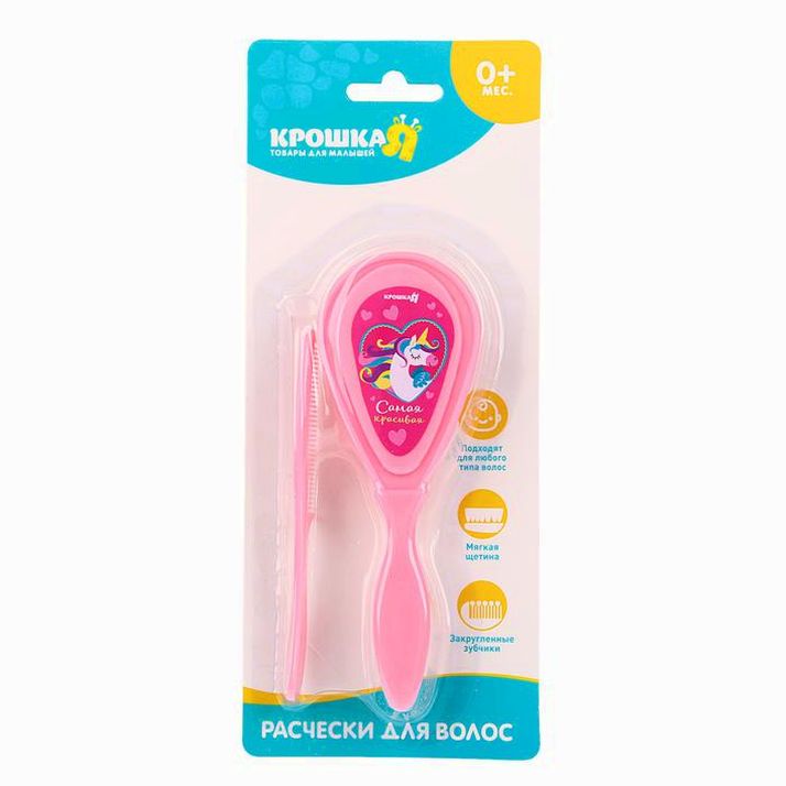 Расческа-щетка с мягкой щетиной и удобная расческа с закругленными зубчиками предназначены для малышей с первых дней жизни.