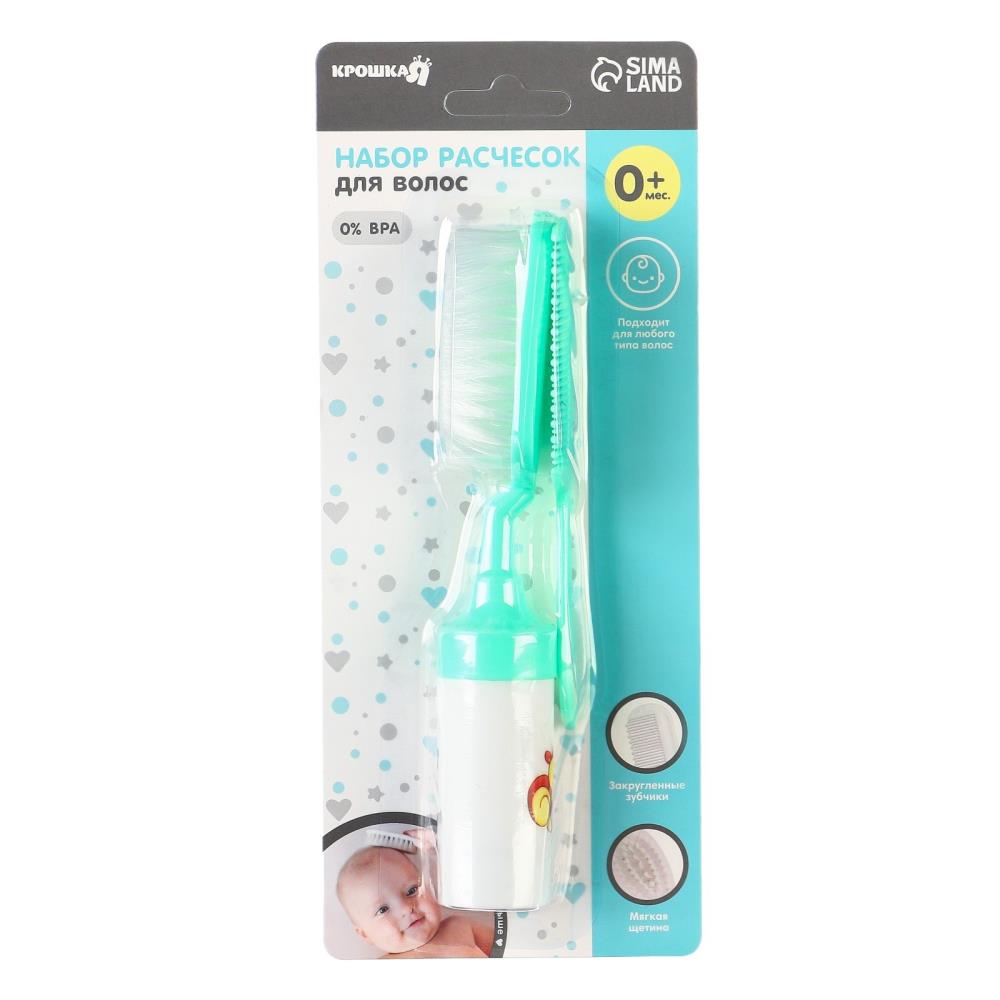 Набор расчесок с погремушкой «Малыш», 2 шт., цвет бирюзовый, рисунок МИКС (№9844160).