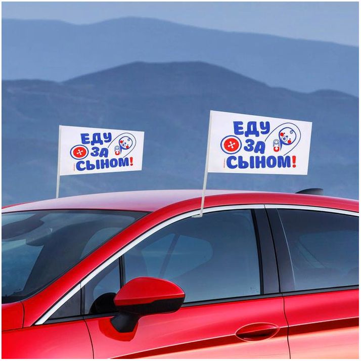 Теперь украсить свой автомобиль и послать сообщение окружающим просто как никогда раньше! Специально для этого мы создали флаг автомобильный «Еду за сыном», 2 шт! Сувенир легко крепится на боковое стекло с помощью кронштейна, не препятствуя при этом полному закрытию окна. Аксессуары надёжно держатся, не портят покрытие автомобиля и не закрывают обзор.