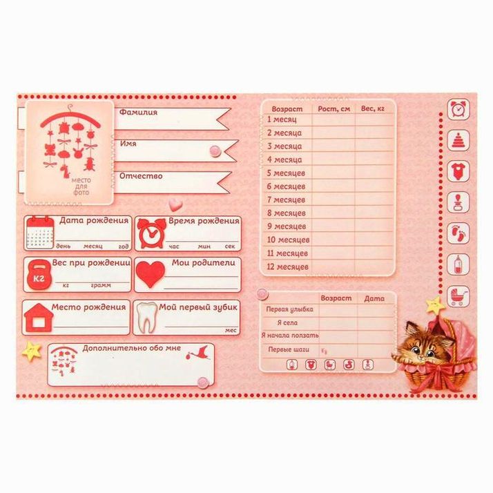 Паспорт сохранит все важные данные о маленьком чуде: его рост и вес, время рождения, информацию о первых достижениях.